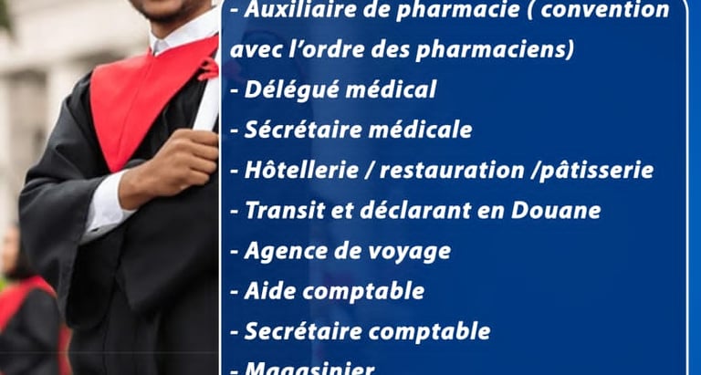 Apprentissage approfondi des savoir-faire pour exceller dans la gestion, l'hôtellerie, logistique et la communiction.